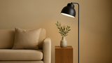 Stehlampe aus massivem Walnussholz mit Stoffschirm – Elegante Retro-Lampe für jeden Raum